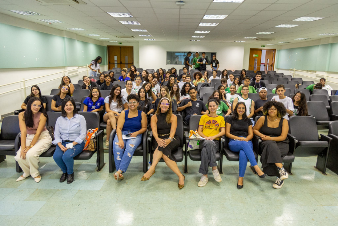Na segunda sessão, realizada em 30 de agosto de 2023, foi exibido e debatido o documentário “Sin&Nhá: entre o palco, vida real e os bastidores” (2021), que evidencia o racismo enfrentado por mulheres negras no mercado de trabalho, especificamente no varejo brasileiro. O debate se orientou a partir das seguintes perguntas: Qual tipo de experiência mulheres negras vivenciam no mercado de trabalho? As mulheres brancas vivenciam os mesmos desafios e obstáculos? Você já presenciou uma situação de racismo na escola? Se sim, como foi?
