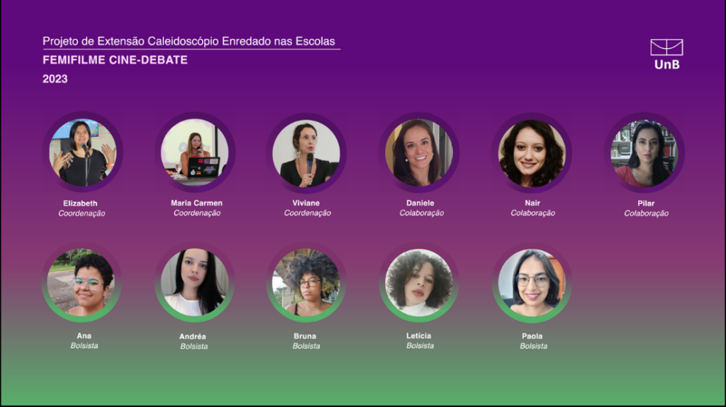 O projeto extensionista “Caleidoscópio Enredado nas Escolas: Femifilme Cine-Debate” é promovido pelo INCT Caleidoscópio – Instituto de Estudos Avançados em Iniquidades, Desigualdades e Violências de Gênero e Sexualidade e suas Múltiplas Insurgências, apoiado pelo CNPq e sediado na UnB, em parceria com o Instituto Federal de Brasília (IFB) Campus São Sebastião, o Centro de Estudos Avançados Multidisciplinares (CEAM), o Laboratório de Estudos Críticos do Discurso (LabEC), o grupo Afecto e o Grupo de Estudos Interdisciplinares sobre Género (GREIG), e com financiamento dos editais Licenciaturas em Ação e PIBEX 2023.